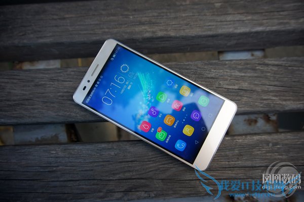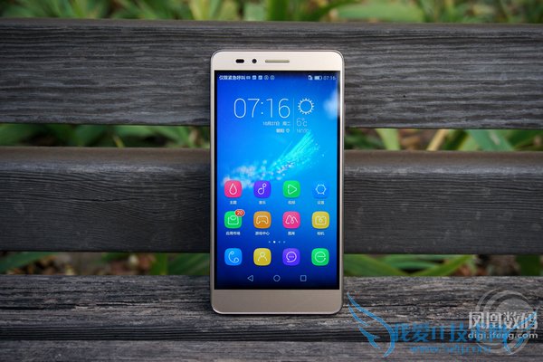 荣耀畅玩5X的三维尺寸为151.3*76.3*8.15mm,重量约为158g,并提供了落日金,暗夜灰,破晓银3种机身颜色可供用户选择,此次凤凰科技拿到的评测机型为落日金色,在保证了时尚设计的同时,更加平添了一丝商务感。