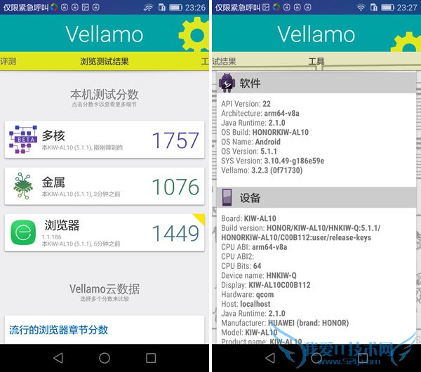 我们此次采用的测试软件为Vellamo,Vellamo是评估Android设备上的浏览器性能的一款软件,本次测试的HTML5模块可用来评估移动网页浏览性能,Vellamo可对滚动缩放,3D图形,视频性能,内存读写,带宽峰值性能等诸多方面进行评估。