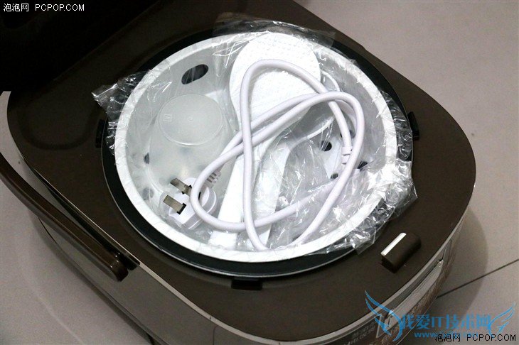 打开球釜电饭煲的包装,最上层能够看到电饭煲的核心:6层超厚釜,然后就是随机的配件,例如电源线、饭铲、蒸屉、产品说明书和保修卡等。