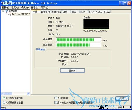 下面我们就来进行无线信号强度进行测试,我们固定一点放置无线路由,之后我们分别用蹭网卡、SAPIDO无线网卡来进行测试以及笔记本自带的Intel 5100无线网卡来搜寻无线网络信号,看信号强度究竟能达到多少。
