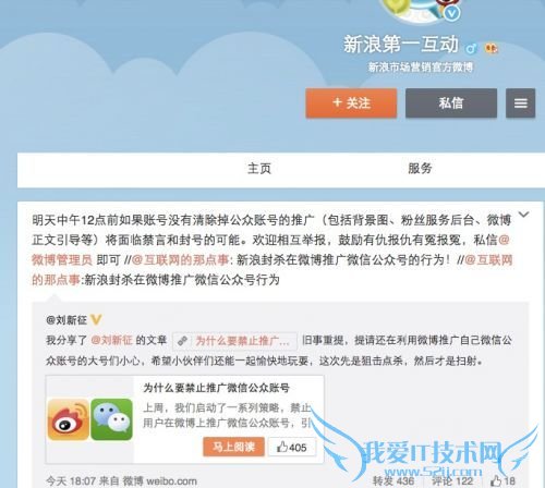 新浪微博再度封杀微信:禁止推广微信公众账号