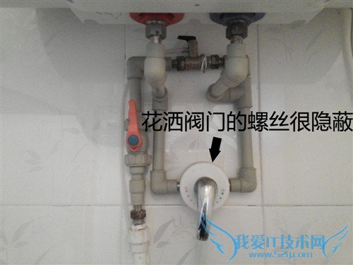 事实上拆了冷水、热水管线以及接地线后就可以拆下热水器了,但考虑到还有各种“碍事”的水管,所以还是先拆下所有管线再解决这个大块头吧。需要除了冷热水管线,需要拆下的部件有三处,花洒固定螺丝、控制花洒出水的阀门以及进水的管路。这三点中比较困难的是花洒阀门,它的螺丝很隐蔽,这里还是请教了下客服才知道如何下手。