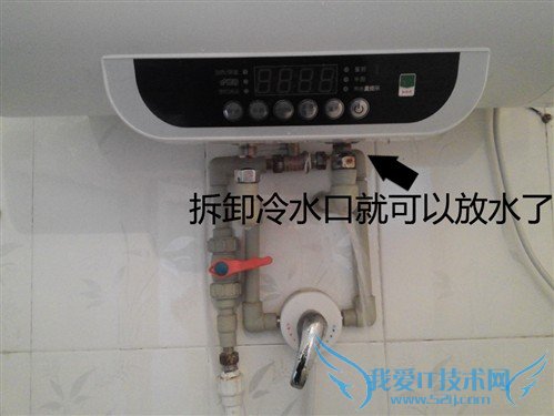 第二步:拆下冷水注水口螺丝放干内胆存水