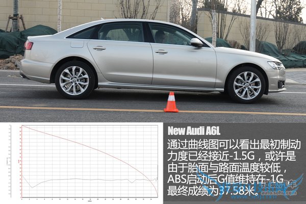 在测试完加速之后,我们对这款车型的制动能力也充满了期待,虽说寒冷的气温对于轮胎的抓地力会起到一定的不良因素,但即使这样最终新A6L的百公里制动距离被锁定在了37.58米,对于一款中大级车型来说,这样的成绩已经十分不错。
