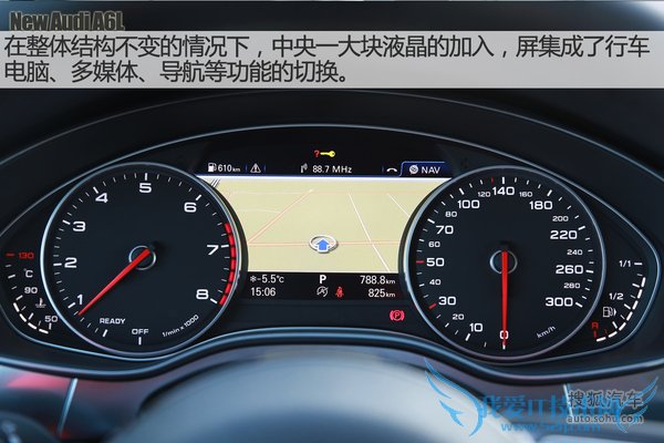 仪表盘在未点亮的情况下与老款车型相差无几,但改变之处在点亮后便可发现其中的奥秘,中央一大块液晶屏集成了行车电脑、多媒体、导航等功能的切换。