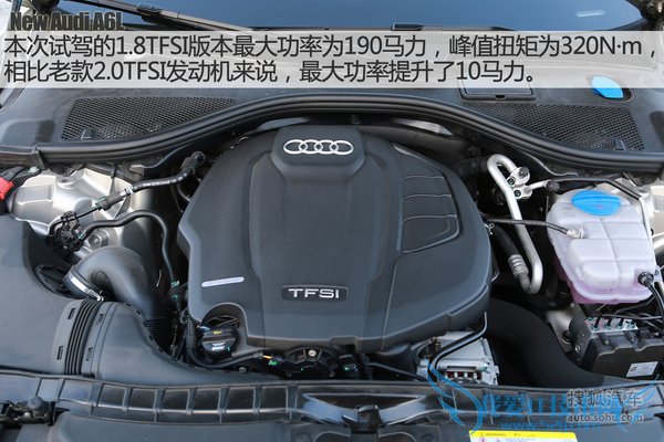 或许有些消费者看到短标题后会有一些失望,不过在这里我可以负责人的告诉您,大可不必。入门级车型将老款的2.0TFSI涡轮增压发动机换上了1.8TFSI涡轮增压发动机,同时,新增加的3.0TFSI机械增压发动机取代了老款上那台2.8FSI自然吸气发动机。本次试驾的1.8TFSI版本最大功率为190马力,峰值扭矩为320N·m,相比老款2.0TFSI发动机来说,在扭矩不变的基础上,最大功率提升了10马力。