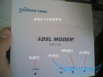 3、接完以后,看看灯是否亮,MODEM的灯正常使用的情况下全部会亮