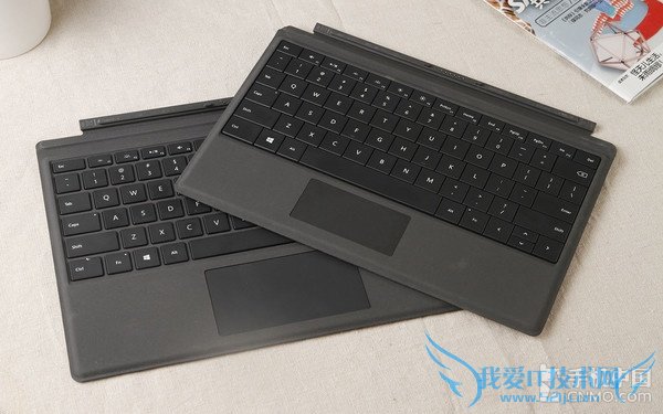 微软Surface Pro 4与Surface Pro 3还有Surface 3键盘接口一模一样,都是磁吸式接口,也就是说三款设备的键盘通用,只是大小不匹配,无法完美的覆盖屏幕。Surface Pro 4键盘保护盖按键体积缩小,间距变大,触控板采用玻璃材质,体积增加接近一倍,手感更舒适。另外,发布会上微软还提到一款带指纹识别的键盘,目前并未发售。
