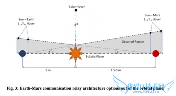 上图中,Sun-Mars那个在轨道上方0.176AU(天文单位)的地方,Sun-Earth那个0.116AU。论文中提到使用太阳帆或者离子发动机都行。