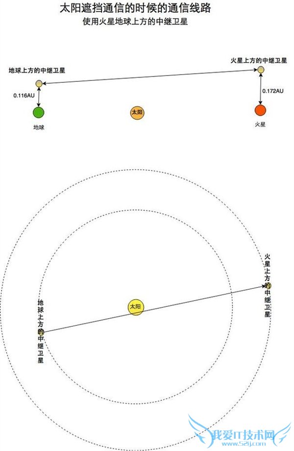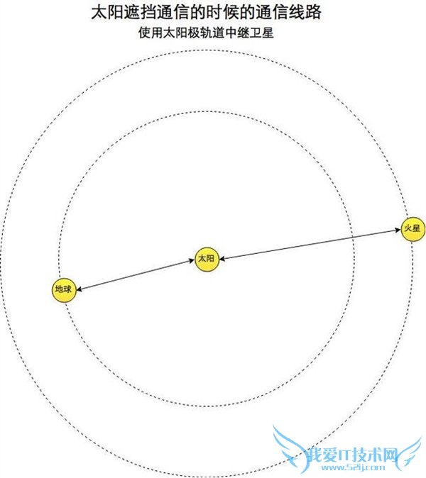 所以在没有太阳不会遮挡火星地球通信的时候,可以直接地球和火星之间,但是在太阳遮挡了地球和火星通信的时候,需要使用太阳极轨道中继卫星,所需要多花的时间可以忽略不计。
