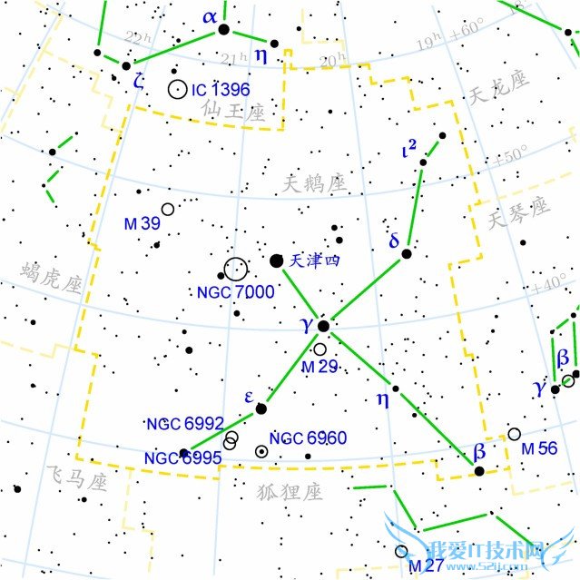 天鹅座α星是一颗白色的一等星,距离我们1500光年,仅比Kepler-452b的母星远100光年(不过对我们来说仍是一段遥不可及的距离),它是一颗超巨星,放射着比太阳强烈5000倍的光,在这颗星的周围,有以每秒100公里的速度膨胀的气体云形成的包围圈。天鹅座α星在今后8300年的时候,距离天球的北极点仅仅6.6度,是最靠近北极的一颗亮星了,那时它将成为“北极星”。