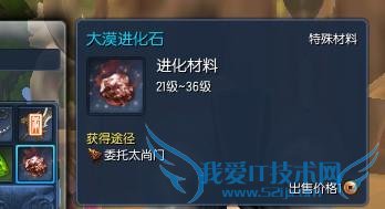 那么大漠进化石怎么获得呢,我们可以通过查看物品信息得知这个材料是要委托太上门的。意思就是说这个东西是委托太尚门制作出来的。当然由于是可以交易的东西,所以也可以拍卖行或向其他玩家购买。