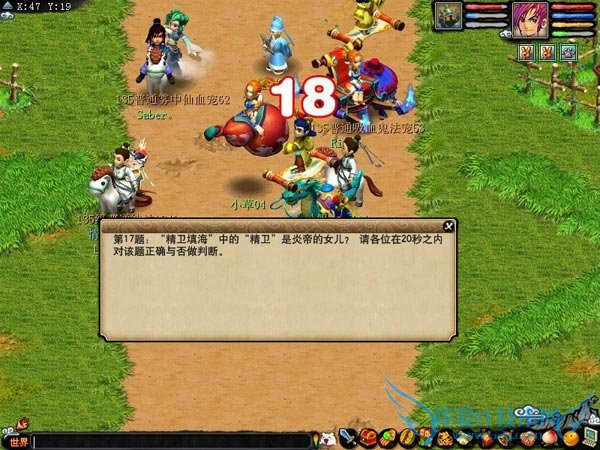 每个整点将会在西梁女国、朱紫国、傲来国出现知识老人,每次知识老人存在10分钟,回答出他们的问题将获得看图说话积分。