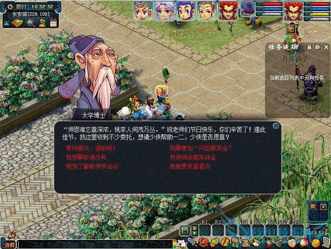 在活动期间,≥30级的玩家可以去长安城(228,107)处找到太学博士领取任务,为一直默默奉献的老师做些力所能及的小事,回馈老师们的恩情。每10个任务为一轮,每次完成任务都可以获得丰富的经验奖励,有一定几率获得物品奖励。队长带队一轮后,将额外获得抽取奖励轮盘一次的机会,奖励轮盘可是有机会转到高价值的物品哦。