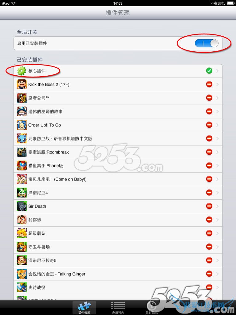 选择“插件管理”,把“启用已安装插件”的开关打开,这样能保证在内购额时候安装的游戏插件能顺利生效。