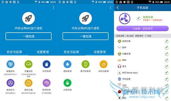 除此之外,HTC安全助手也是一个不错的管家类的应用,它拥有手机加速、病毒查杀、流量监控、省电优化、骚扰拦截还有自启动管理等等,从功能性上来说确实表现的很全面,从优化到安全再到数据统计等等都很全面。而且作为一款系统集成的管家类应用,作用也显得更加明显。