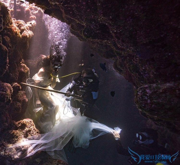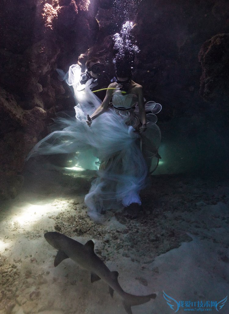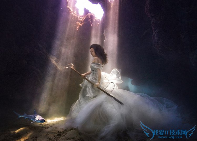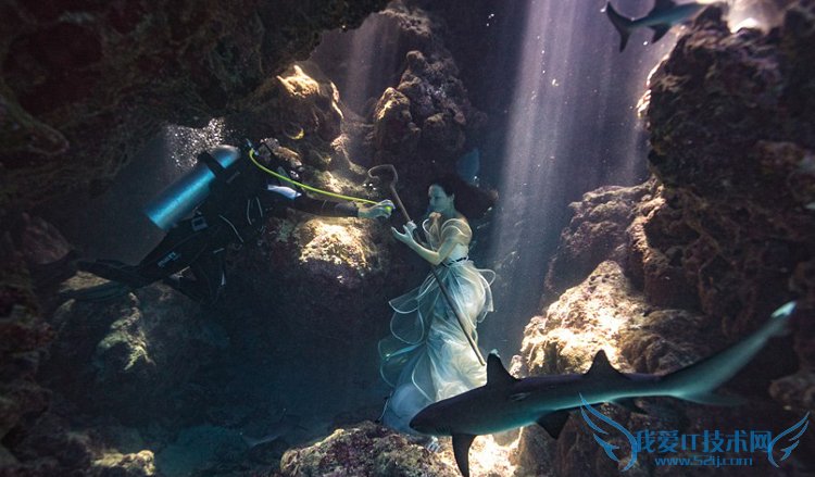 这位摄影师名叫本杰明?冯?王(Benjamin Von Wong)。在本杰明最新的摄影作品中,模特安伯?伯尔克(Amber Bourke)身穿一袭白色纱裙,与水底小鲨鱼们和谐共存。据悉,此次拍摄得到了斐济当地专业的潜水人员和海洋生物专家的大力支持与配合。