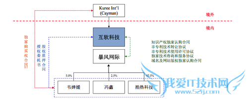 2005年8月,冯鑫团队注册成立了酷热科技。2006年5月开始,在投资人指导下搭建了VIE架构: