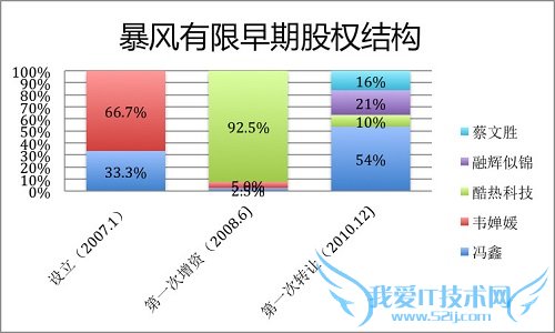 2007年1月成立的暴风,注册资本仅为150万元。2008年6月增资至2000万元。2010年12月酷热科技将大部分股权转让给冯鑫等人。
