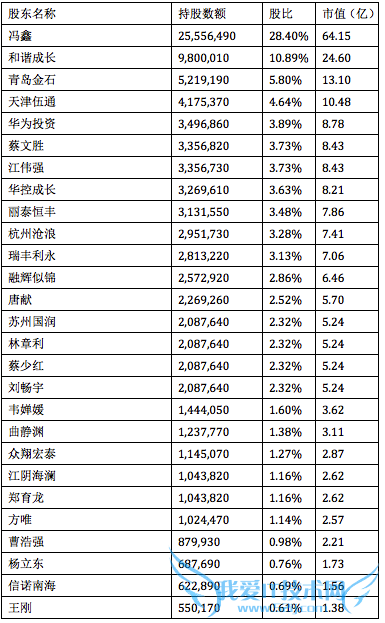 冯鑫以64亿元高居榜首。此外,冯鑫还控制着融辉似锦、瑞丰利永、众翔宏泰,这三家合伙制公司持有上市公司股票市值约16.4亿。