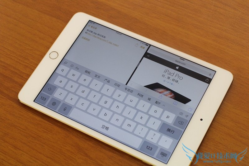 不过尽管实现了一定程度的多任务处理功能,但就办公效率来讲,个人还是不建议用iPad mini 4来办公。主要原因在于屏幕尺寸,在使用虚拟键盘时,键盘会占用掉半个屏幕,显示的信息将非常少,影响办公效率。而当我切换至蓝牙键盘,将其放在桌上调整好角度后,我发现眼睛会离iPad mini有一定距离,而在这个距离下去看iPad mini 4上面的字符,是对眼睛的一种折磨。