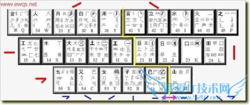 键中的哪个了!不信?可以将上面字根分布图中的所有字根按这个原