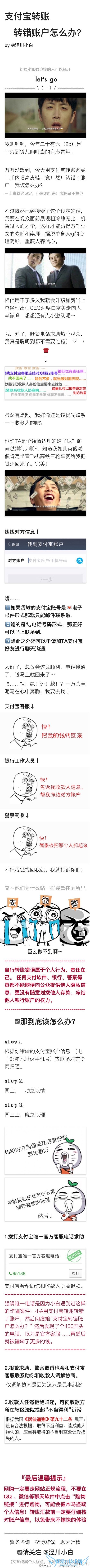 相信有不少人都有过类似的经历,一不小心转错,把钱打到了别人的支付宝账户里。如果对方不肯归还,那可怎么办?为此,警察蜀黍、银行、支付宝客服都为此躺过枪,那么正确的应对方式又是怎样?日前,泾县公安局、公安在线管理员@泾川小白制作了一张图文并茂的长微博,详细介绍了转错支付宝账户的应对流程以及细节,人民日报、支付宝官方微博纷纷转发。