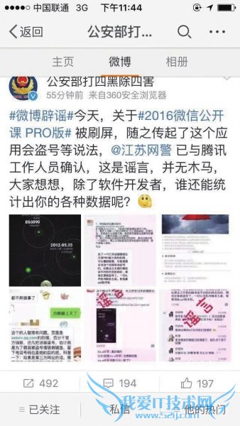 昨晚10点15分,泉州网警巡查执法发布微博称,经与广州、深圳网安部门联系,“2016微信公开课PRO版”,链接指向为腾讯公司,未发现病毒。