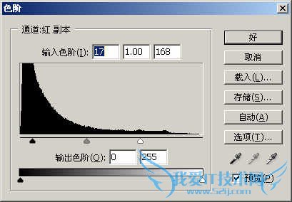 第三,用色阶命令对红通道副本进行调整,参数如图: