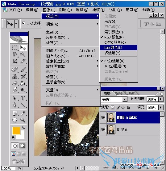 第四,经过第三步,为照片清晰大致做了个基础。接着选择“图像”菜单下“模式—LAB颜色”命令,