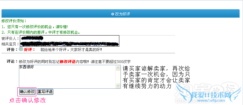 下面附带新手修改评价的图文详解供各位卖家使用:
