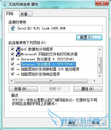 双击“Internet协议版本4(TCP/Ipv4)”,如图: