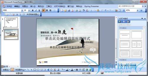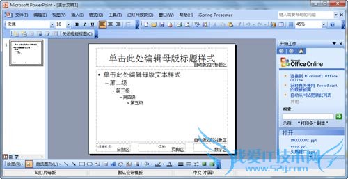 很多朋友都问我如何制作PPT模板,其实制作PPT模板是非常简单的,重要的是如何制作出有美感的PPT模板,但这又是需要时间积累的,所以下面我们先说一下如何制作PPT模板的问题,因为我接触的朋友大多都是使用2003版本的软件,所以下面就用2003版本来说明一下如何制作自己的PPT模板吧,可能2007版本的会有所出入,但基本的操作步骤都是差不多的,特此说明。