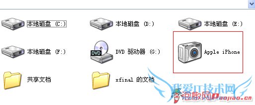 这时,设备将从系统中删除,驱动也会一起被卸载。之后,拔出USB数据线,重新插入一次。系统会自动检测新硬件设备并安装驱动,这时,进入我的电脑,你就能发现多出了iPhone照相机的图标,双击图标就可以将iPhone上的照片上传到电脑了,再次连接上iTunes,你就会发现自己的iPhone被识别出来了。