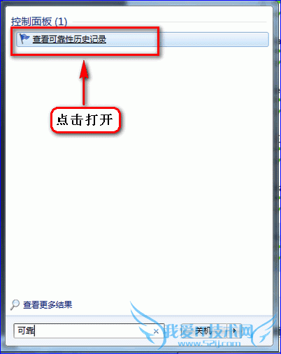 1. 在“控制面板”中打开“操作中心”,在“维护”选项下查找“查看可靠性历史记录”链接。还可以直接在开始菜单“搜索”中键入“Reliability Monitor”或“查看可靠性历史记录”或直接搜索“可靠”,然后打开“查看可靠性历史记录”链接。(Windows 8系统可按下Windows键+W键进行搜索)如下图:
