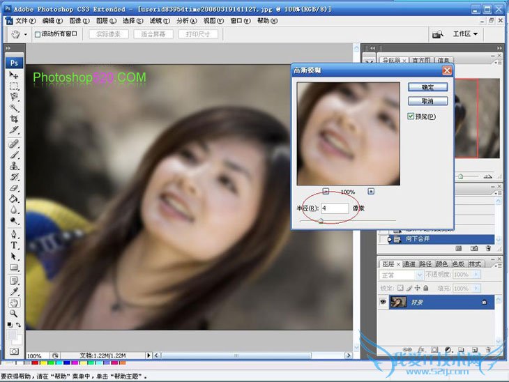 不知道看官明白了没有。我们其实是在这个照片上,“局部”“有程度”的恢复那张高斯模糊的图层。