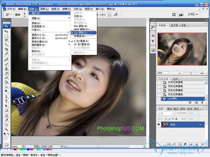 磨完了的照片就可以锐化了,把图像设置成LAB模式。
