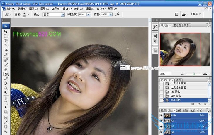 这个是我的理解,嘿嘿。 反正你听我的就是了,要锐化就在LAB里做,做完转回RGB.