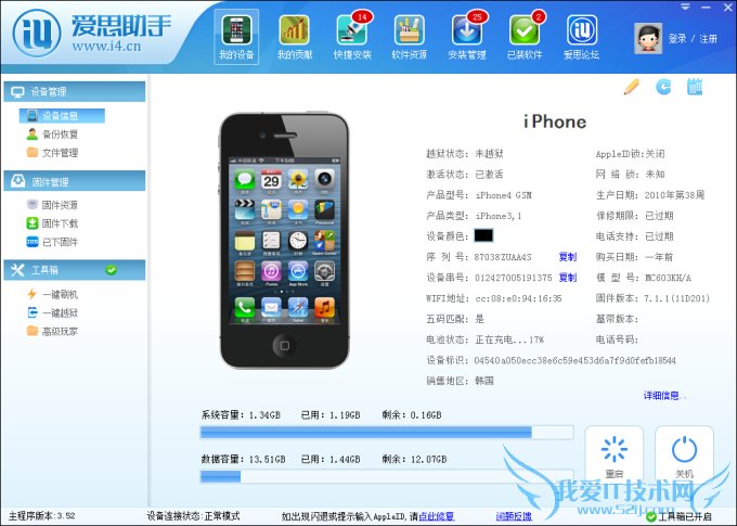 第一步:安装最新版本的爱思助手,将设备连接电脑,打开爱思助手。