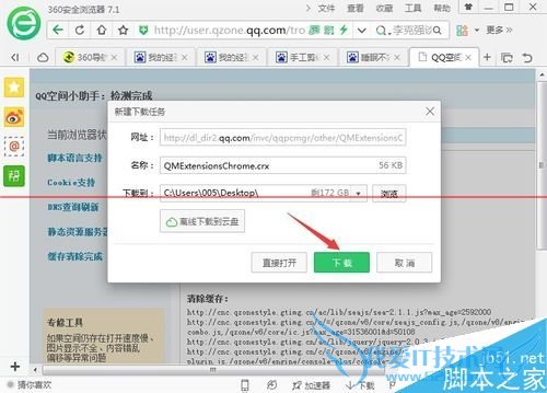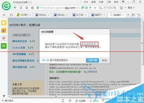 5、下载完成以后,弹出了一个对话框,上面提示临时修复了qq空间打不开的问题,可以点击返回空间,我们点回去试一下,如图所示。