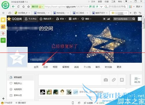 6、点击返回空间以后,我们发现,qq空间已经修复好了,问题已经解决。如果还是不行的话,就只能按照上述提示下载官方的专修工具修复了。