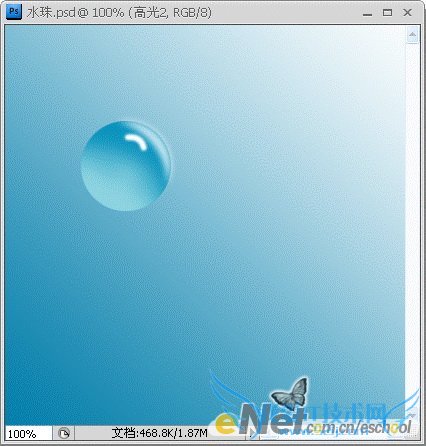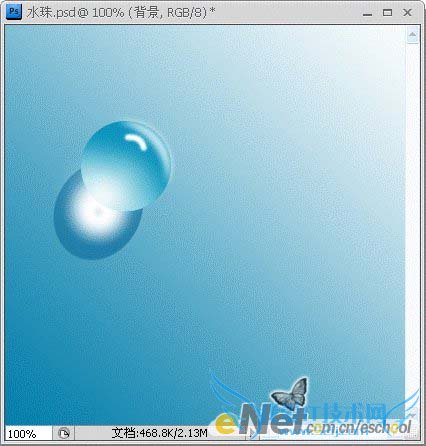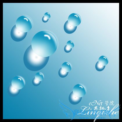 14、在图层调板中,将除【背景图层】以外的所有图层选择,然后按【Ctrl+E】键合并图层,将新图层命名为【水珠】。在工具箱中选择【移动工具】,按住【ALT】键不放,拖动鼠标。这样可以复制【水珠】图层,得到一颗新的“水珠”。然后按【Ctrl+T】键进入自由变换模式,调整图层大小及位置。重复上面的步骤,最终效果如下图所示。