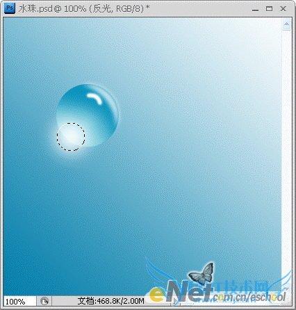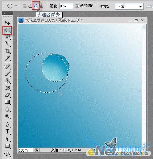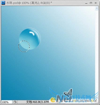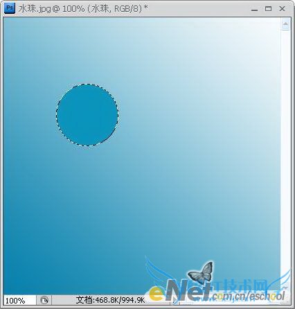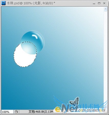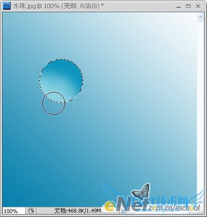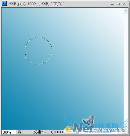 3、点击图层调板下方的【创建新图层】按钮,新建一层,并命名为【水珠】。选择【椭圆选框工具】,绘制一个如下图所示的正圆选区。