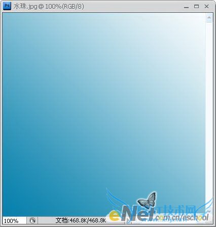 2、将前景色设为#0580ac,背景色设为白色。在工具箱中选择【渐变工具】,从画面的坐下到右上拉一个从前景色到背景色的线性渐变,效果如下图所示。