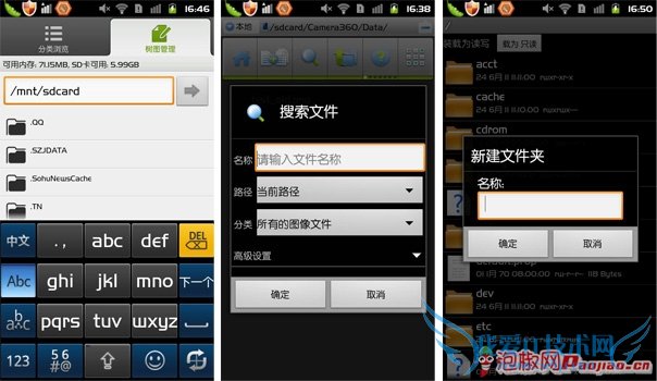 RE文件管理器:RE的只是提供了简单搜索,同样的道理,虽然有这个功能,但是搜索的时间就变得比较久,尤其是文件数非常多的时候,不利于体验。