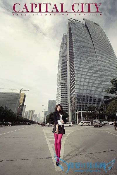 在使用广角镜头拍摄全身人像时,如果采用低角度拍摄,仍然会产生畸变,但有时可以利用这一特点来弥补被摄人物本身的某些缺点,如有个别的被摄者的腿较短,上身较长,采用这种角度的拍摄,会使腿在画面上表现出一种修长的效果,增加其美感。