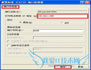 说明打印机 IP 地址与网络端口 IP 地址不同,进入打印机驱动程序属性界面,选择“端口”选项卡,点击“配置端口”按钮,在“端口设定值”窗口中,确认设定的 IP 地址和打印机 IP 地址一致,如果仍然故障,说明打印机内置打印服务器可能有故障,需要维修打印机。