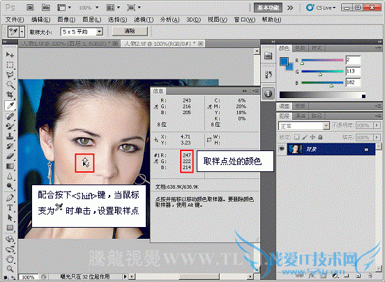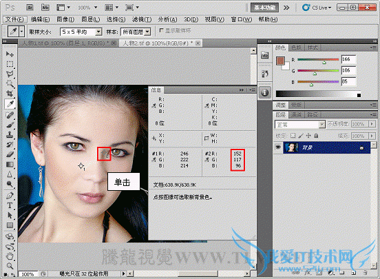(2)确定“人物 2.tif”文件为激活状态,在工具箱中选择“吸管”工具,