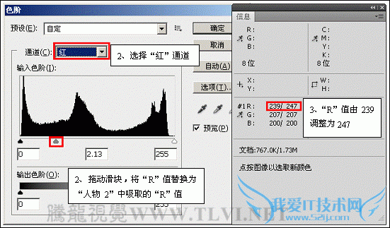 提示:在拖动滑块时要观察信息调板中RGB值的变化。