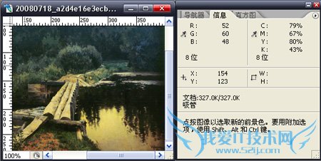 可以选定图像中的颜色,在信息面版中将显示光标所滑过的点的信息。
